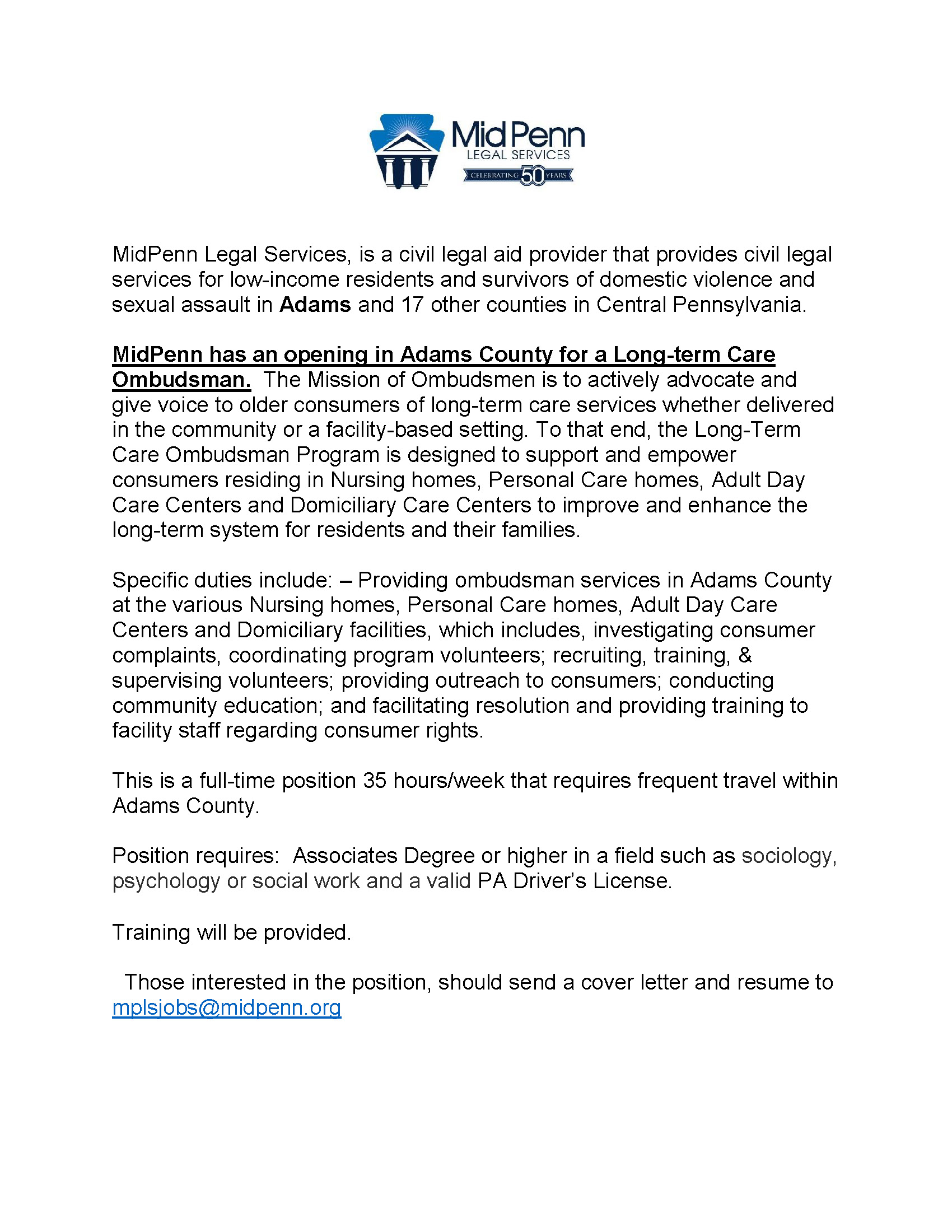 Edger Managing Attorney. The types of programs vary across MidPenns service area but in each there is a close working relationship with the local Bar Association. For Help in Adams Bedford Berks Blair Centre Clearfield Cumberland Dauphin Franklin Fulton Huntingdon Juniata Lancaster Lebanon Mifflin Perry.